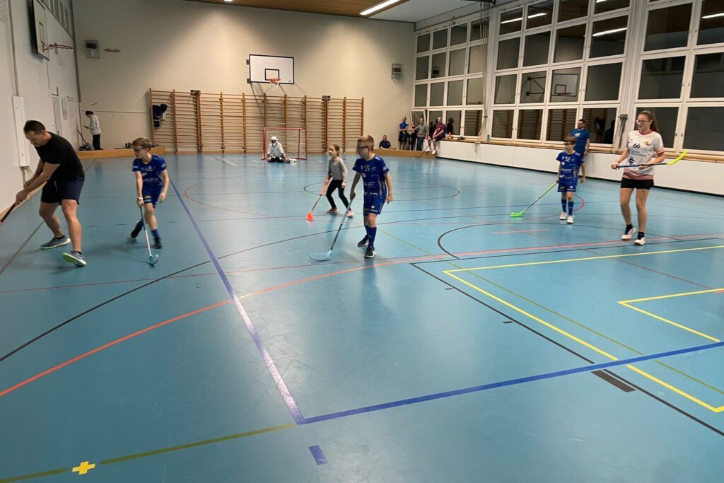 Während des Trainings durften die Eltern selber zu Stock und Ball greifen, haben versucht, die Kids fair zu stören und den Spielrhythmus zu halten – was sich für viele überraschend anspruchsvoll herausstellte. Für die Junioren war die Motivation besonders gross, ihre Eltern als Mitspieler herauszufordern und ihnen zu zeigen, wie vordergründig Bewegung, Technik und Teamgeist im Unihockey zusammenwirken.